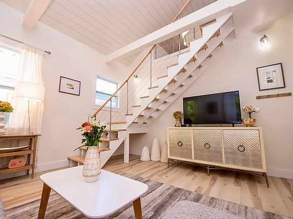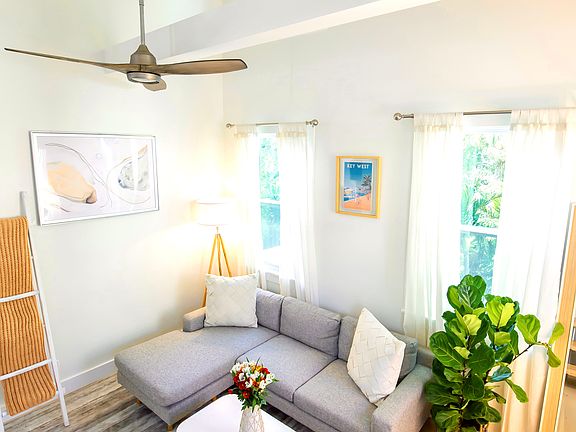 The Emelina Elegant 1BR/1BA Loft Unit in a Historic Key West Home Welcome to The Emelina, a beautifully appointed upstairs unit nestled within a stunning historic home in Key West. This 1-bedroom, 1-bathroom loft-style residence blends timeless charm with modern luxury. Step into an airy living space with vaulted, shiplap-adorned ceilings that create an open and inviting atmosphere. The kitchen, while quaint, is thoughtfully designed and fully equipped for all your cooking needs. The bathroom offers a tub and shower combo, perfect for relaxing after a day in the sun. Upstairs, you'll find a cozy loft bedroom featuring a queen-size bed, a private seating area, and ample storage ideal for comfort and functionality. Don't miss your chance to live in one of Key West's most charming and thoughtfully designed residences. Owner pays all utilities