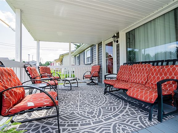 Must see this adorable Ranch in a great neighborhood in Struthers school district. This home has been well cared for 31 years and ready for you to move in! Enter the home from the large front porch into a bright freshly painted living room. Down the hall offers 3 nice sized bedrooms and a full bath. Walk through the eat in kitchen to the finished basement with bar and full bathroom. Finishing off with a Screened in back porch and concrete patio with a private back yard perfect for entertaining! Updates include, Vinyl siding, windows, roof, furnace and central air all within the last 5-10 years. Per seller, hardwood floors underneath the carpet. This home will not last long! Make your appointment today!