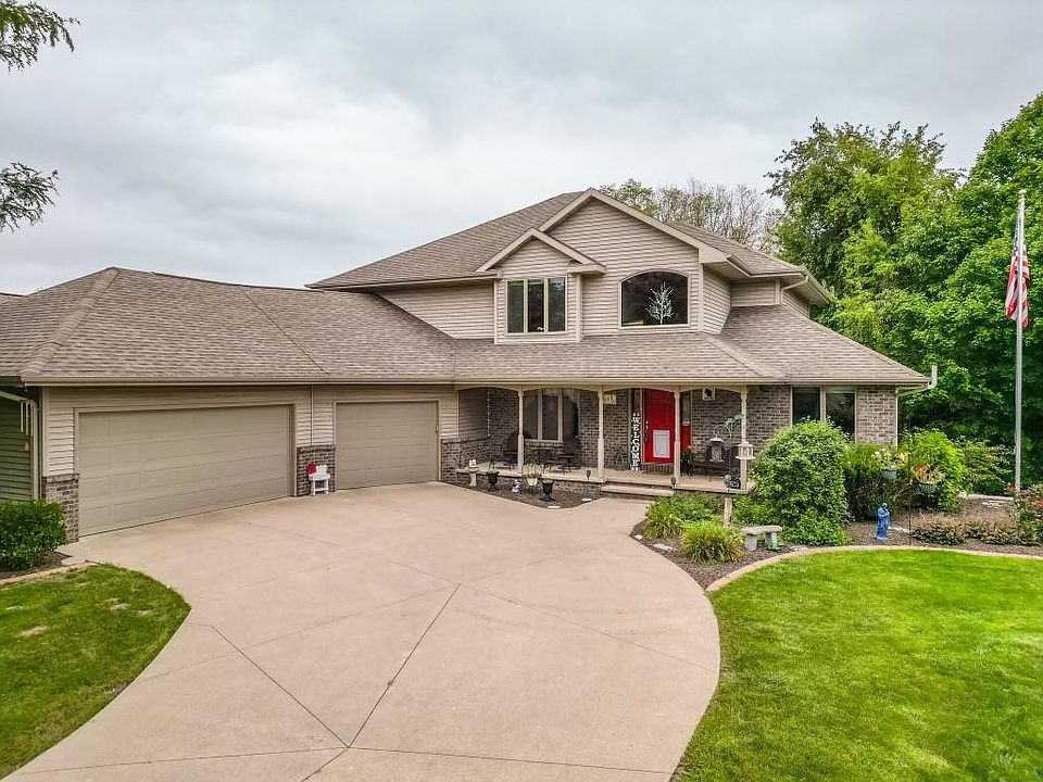 Gorgeous walkout 2-story gem on incredible, wooded ravine lot in the Kimberly School District. Tranquility defined! Amazing open concept gem with large great room showcasing fireplace & spectacular window overlooking private yar. Gourmet kitchen with island flows into picturesque Sunroom. Formal Dining Room,& Office adorn the main floor. Upper Level houses Primary BR (and all BR's). Oversized Primary BR has nice closet & private bathroom. Finished LL Family Room with walk out plus stairs to huge 3.5 car garage. Spectacular landscaping w/water fountain. Deer & wildlife abound in private back yard. Huge Bonus: NEW ROOF OCTOBER 2023 !!! Mostly newer paint through entire home December 2023 !!! Quicker occupancy is an option here, too!