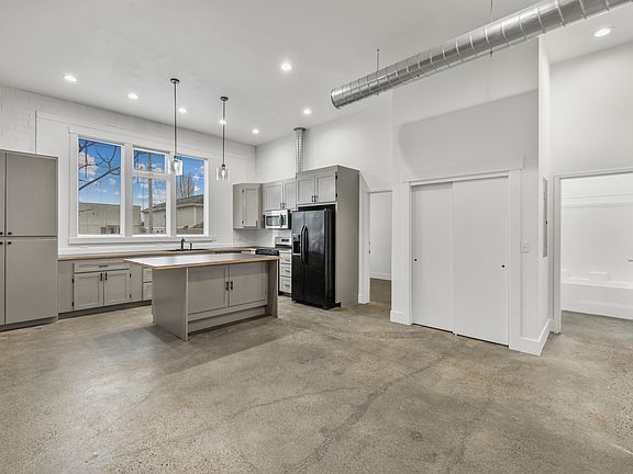 This newly remodeled townhouse has a clean, modern industrial vibe. It feels spacious with lofty 12' ceilings and loads of natural light though huge picture windows. 3 bed, 1 bath 1000 sq ft townhouse is walkable to grocery, stores, restaurants, parks, and the local public library. Durable, modern, pet friendly concrete floors add to the appeal, along with industrial brick walls and exposed conduit. Large kitchen with abundant cupboard storage and central island, fridge, range, dishwasher, microwave, natural gas forced air, on-demand hot water, off street parking, pets negotiable, fiber internet available, water and sewer included, $2500 monthly rent $1500 deposit ($350 non-refundable animal fee if applicable)