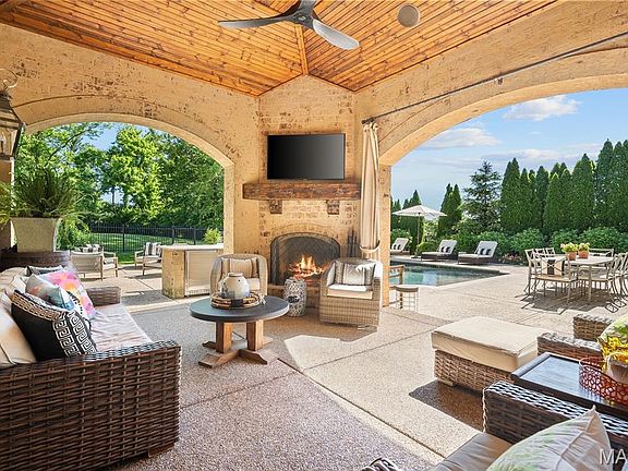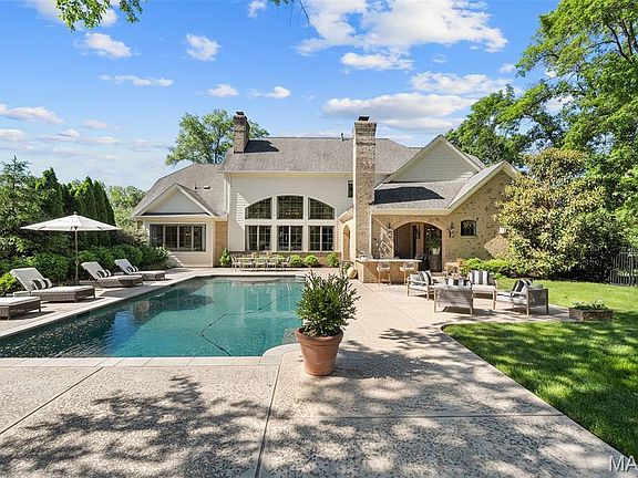 Welcome to 611 Hickory Lane, a resort-style estate in coveted Frontenac, located within the highly sought-after Kirkwood School District. Offering 7,000+ sq ft of beautifully appointed living space, this 11-year-young home is the perfect blend of timeless luxury, modern functionality, & refined comfort. Just off the expansive chef’s kitchen, the cozy yet stunning family rm features a fireplace and wood-beamed ceilings, creating an inviting space for everyday living. The kitchen also opens to a formal dining rm, which flows effortlessly into a sophisticated hearth room—designed for seamless entertaining & connected living. Upon entry, a richly appointed private office & a moody, gorgeously decorated den offer elegant spaces for work or relaxation. The main floor primary suite is a luxurious retreat, w oversized windows & an en-suite bathroom that evokes a five-star spa experience. The lower level continues the elevated living experience with a full wet bar, guest suite, and multiple recreation areas perfect for entertaining or unwinding. Outside, your private resort awaits—with a sparkling pool, built-in grill, wood-burning fireplace, and lushly landscaped lounge areas designed for unforgettable gatherings. Beyond the fenced yard, a peaceful stretch of private land includes a charming chicken coop & its beloved resident, Ethel the hen. A three-car garage & newer, meticulously maintained systems complete this extraordinary property—where luxury, comfort, & character converge.