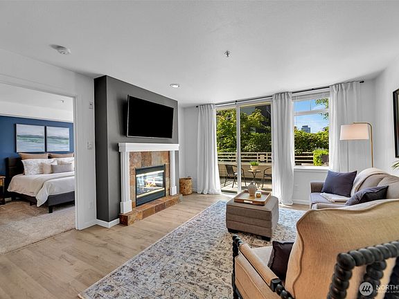 Welcome to this bright, south-facing end unit tucked away in a quiet, well-maintained, lower Queen Anne building. The smart circular layout offers great flow, and the private deck provides a peaceful spot to relax or entertain. The dual-access bathroom adds convenience and flexibility. Located at the rear of the building for added peace & privacy, with just three units on the floor and within a friendly, respectful community. Near great cafés, restaurants, shops, Seattle Center, and Climate Pledge Arena—close enough to skip the car, yet far enough to avoid event-day crowds. A pedestrian bridge leads to Lake Union Park, and enjoy easy access to 99, I-5, and the Burke-Gilman Trail. Secure garage parking and in-building storage are included.