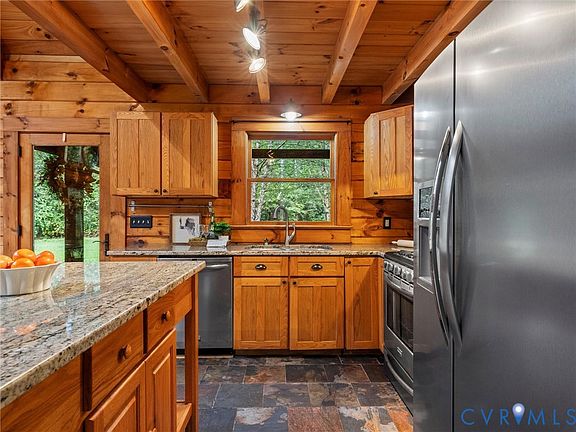 Welcome to 611 Hills Fork Rd, a private wilderness retreat unlike any other! This custom built log cabin was meticulously designed by the original owners, and is being offered for sale for the first time. Situated on 31.71 acres, this incredible property blends modern and rustic in perfect harmony. Upon entering you will instantly notice the incredible natural light and custom details throughout...from the real log walls to the slate floor tiles, each hand selected by the owners. The vaulted ceilings create a dramatic effect, and the large windows offer excellent views of the natural beauty outside. Kitchen with granite countertops, SS appliances, gas cooking, island, dbl sink, custom cabinets, & pantry w sliding barn door opens to living room with slate floors & cozy gas fireplace. Separate dining area has sliding doors to side deck. Primary bedroom is also located on the main level, with beamed ceiling, sliding doors to rear deck, and full private bath with tile shower, dbl vanity, and excellent storage. Also on the main level are the laundry/mudroom with half bath. Upstairs are the loft area, great for a family room, bonus room, or home office, the second bedroom, and the second full bath w tub, tile surround, recessed storage area w barn door, & custom vanity. The outdoor space is truly exceptional, with a covered front porch, a large side porch, and a rear patio with separate fire pit area. Best of all, this home utilizes geothermal heating and cooling systems, making your electric bills almost non-existent! Additional features include 30-year roof, washer & dryer, fruit trees, mature landscaping, and a long, very private driveway: all located within 20 minutes of shopping, interstate, and more! This property is TRULY one of a kind. Don't wait, schedule a showing today and make this private oasis your new home.