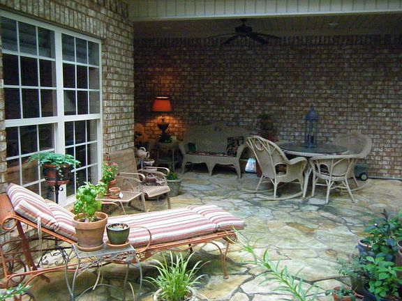 Beautiful Landscaped Yards Leading You Into The Courtyard Garage Entry. Custom Built In 2008 W/Open Split Floor Plan, Gas Fireplace In Liv.Rm., Galley Kitchen With Stainless Appliances, Large Pantry, Granite Countertops. The Breakfast Room Has French Doors Leading To A Beautiful View of Back Wooded Area, Cov. Patio With Flagstone. Master Has Large Sitting Area, Master Bath Offers Sep. Shower, Jacuzzi Tub, Dual Vanity And Granite Counters. Sprinkler System. Dining Room Chandelier Will Not Remain.