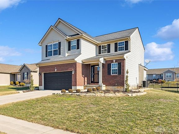 Welcome to this gorgeous, 3 bedroom home in Xenia! The front door has a sidelight window, adding style and natural light to the entrance. From the entry room you are invited into a spacious open-concept floor plan with LVP flooring throughout the main level. The living room features an elegant, gas fireplace mantle and is open to the dining room, styled with a linear chandelier. The kitchen features all stainless steel appliances as well as a walk-in pantry. A half bath is conveniently located on the main level. Upstairs, you will find the spacious primary bedroom with an accent wall, en-suite bathroom and walk-in closet. There are two more well sized bedrooms and another full bathroom. Bedrooms have wireless remote ceiling fans. The basement has been remodeled and finished, adding nearly 500 extra square feet of living space to the house. It features new LVP flooring, another full bathroom, plenty of extra storage, and a bonus room with endless possibilities. Outside you can relax on the charming, stamped concrete patio, overlooking a large fenced in yard with a new storage shed. The professional landscaping all around the home adds that extra touch of elegance, creating an alluring setting for this exquisite home. It is also conveniently located close to shopping and amenities as well as WPAFB. Come and check out this fantastic home!