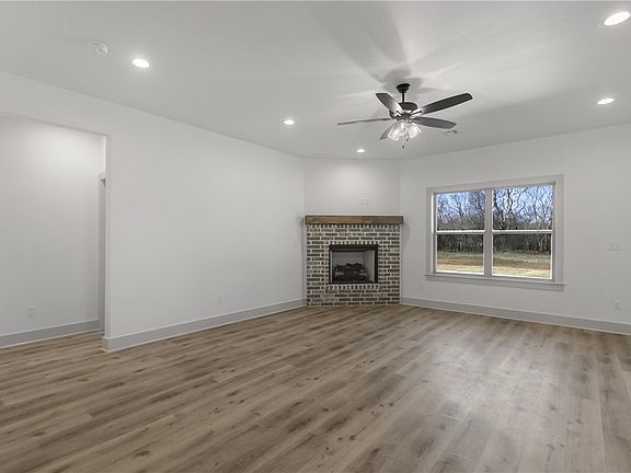 This newly constructed 1,640 sq. ft. brick home features 3 bedrooms and 2 bathrooms, crafted by a local custom builder. Highlights include upgraded light fixtures, modern cabinet hardware, and quartz countertops. The open-concept design boasts a gas fireplace and a kitchen with a gas range and walk-in pantry. Additional features include a cozy pocket office, a covered back porch, and attic flooring for added storage. The insulated garage walls, ceiling, and door provide year-round comfort. A perfect blend of style and functionality awaits!