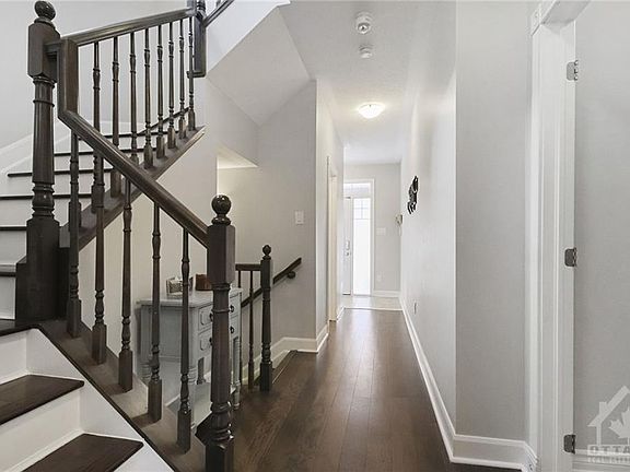 Minto Tahoe 4 bedroom end-unit townhome. Large entryway with double closet. Beautiful hardwood flooring on the main level & upstairs. 9' ceilings on the main level. Convenient mud room at the garage entrance. Impressive hardwood staircase frames the entrance to the open concept kitchen, living room & dining room.Bright kitchen with Quartz counters, stainless steel appliances, breakfast bar island with storage, double sink and walk in pantry. Spacious living and dining rooms with large windows for plenty of natural lighting. Upstairs you will find the primary bedroom with 3-piece ensuite and walk in closet. 3 good sized bedrooms, a full bathroom & convenient laundry room. Huge sized recreation room in lower level has vinyl flooring, installed 2018, & plenty of storage. The backyard is fenced with PVC fencing, great deck for barbecuing.Close to schools, parks & not far from the box stores on Strandherd. Great starter home for young family. 24 hour irrevocable on all offers. 2023-01-16