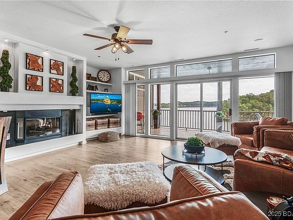 The pinnacle of Lazy Days is now available! This ideally located 3BR/2.5BA, ~1,850 SqFt condo is everything you’ve dreamt of. This unit is situated in the most desirable building in the complex and offers panoramic views of the Grand Glaize arm & the undeveloped State Park. If the view isn't enough, the beautifully updated interior will draw you in even further. Recent upgrades include new LVP flooring, quartz countertops with a waterfall edge, modern light fixtures, GE Café appliances, custom cabinetry, counter-to-ceiling backsplash, 1-year-old Trane HVAC system, Sonos-wired speakers throughout the condo & on the deck, & more! The condo features an expansive primary suite perfectly positioned with the best view in the entire unit, a second ensuite bedroom, guest bedroom, half bathroom, & a laundry room with additional cabinetry. One 12x36 boat slip conveys with the sale, with an additional 10x36 slip & garage available for purchase. Lazy Days amenities include two pools, pavilion & grilling area, boat ramp, trailer storage, playground, & security. The location is peaceful, yet you can reach top Lake attractions by land or water in 10 minutes or less. Don’t miss this stunner!