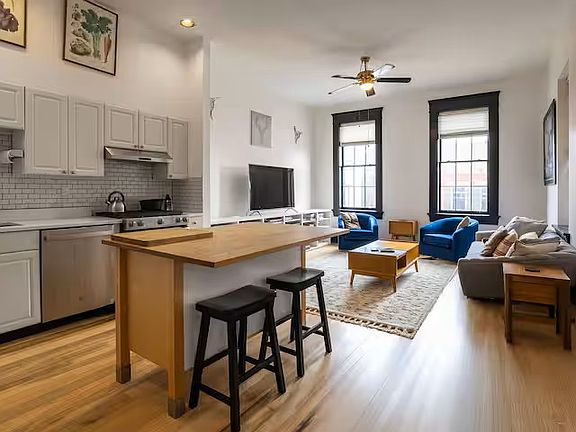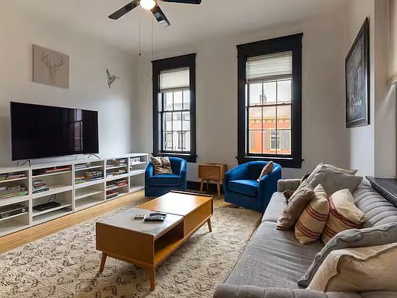 Located on the second and third floors of a historic building with a bakery on the first floor of Main Street, this large 2-bedroom home has everything! Built in the 1860's, this Italianate home features over 2,300sf of functional space with an updated kitchen, and two large, gorgeous living areas for flexibility and entertaining. There are 2.5 bathrooms, all updated, the main bath having a luxury shower and bidet. There is a half bath on the main level with marble floor and granite counter. There is also a laundry room with included washer and dryer, and an additional storage room. Both bedrooms are on the third floor, each with an attached full and private bathroom. The main bedroom has a large walk-in closet that is perfect for your large wardrobe and keeps the bedroom quiet. You will also find a large and amazing rear porch deck (25'x20') with a propane grill. The deck has been redone with composite decking and railings. The home is private for an apartment, as the business does not stay open late, and there is only this apartment in the building. There is also private parking for up to 4 cars that is included with the home, which is a major bonus for the area.