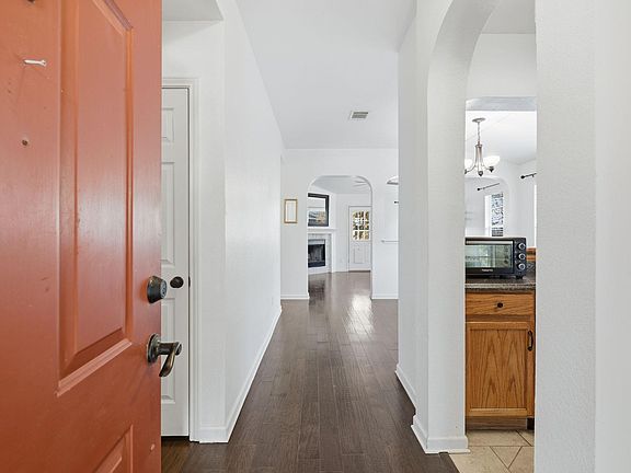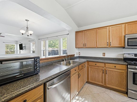 Stainless steel appliancesCovered patioDark cabinetsOpen-concept layoutPrivate fenced backyard