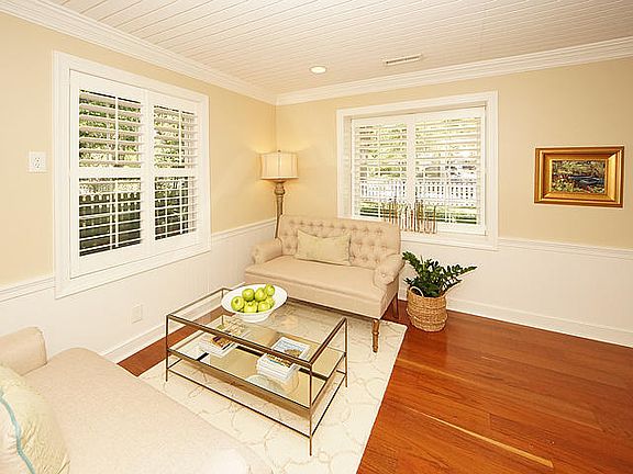 Charming cottage in the heart of Old Village and Old Mt. Pleasant that's move in ready! Centrally located where you can walk to Mt. Pleasant Elementary and Moultrie Middle Schools, Pitt Street Bridge, Alhambra Hall, Old Village for dining, shopping and the harbor. A newer renovation with 3 bedrooms, 2 full baths and 1,973 sq. ft. Living room/dining room combo have wide plank hardwood flooring, wood paneled ceilings, custom built-ins and crown molding. Kitchen was renovated a few years ago with custom cabinets, granite countertops, stainless appliances with built-in microwave and wine fridge. The kitchen is open to the den with tile flooring, recessed lighting, and a ceiling fan. Large master bedroom with hardwood flooring and Ensuite with tile flooring, large tiled shower, claw foot tub,