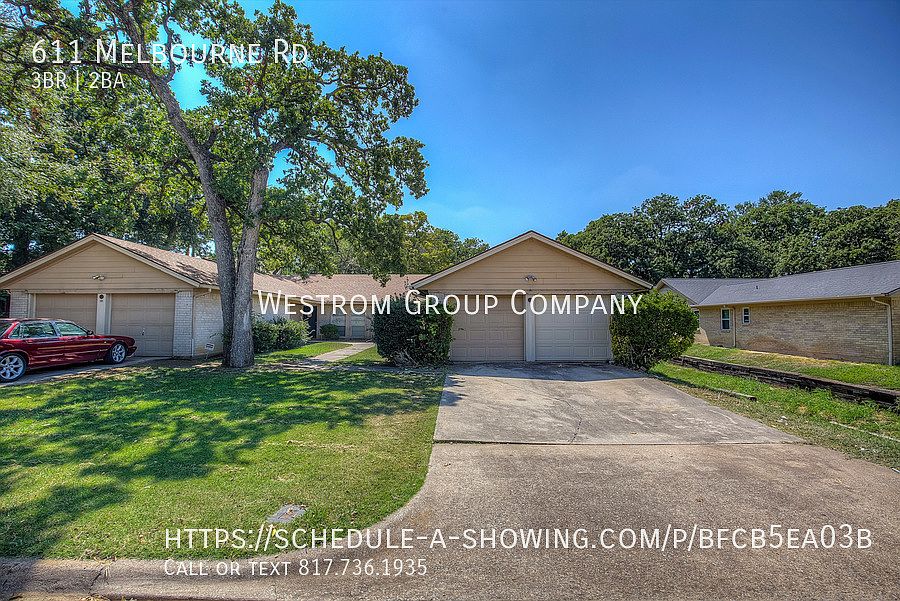 Nestled in the heart of Hurst, this charming 3-bedroom, 2-bath duplex offers a perfect blend of comfort and convenience. As you approach, you'll be greeted by a beautifully landscaped front yard, complete with a mature tree that adds a touch of nature to the curb appeal. Step inside to discover an open floor plan that effortlessly connects the living spaces, featuring a mix of ceramic tile and BRAND-NEW carpet flooring that enhances the home's inviting atmosphere. The kitchen is a culinary delight, boasting dual sinks, built-in cabinets, and a sleek electric range, making meal preparation a breeze. The master bedroom is a private retreat with its own bathroom and a spacious walk-in closet, providing ample storage and relaxation space. Two additional well-sized bedrooms share a second full bathroom, offering comfort and functionality for family or guests. For added convenience, a utility room with space for a full-sized washer and dryer is tucked away in a closet, making laundry days easy and efficient. The property also includes a 2-car garage with a stunning new wooden double-door, ensuring both style and security. This duplex is more than just a place to live it's a place to call home. Deposit, Pet Fees, Rents Due within 24 HOURS OF APPROVAL! We do not advertise on FB Marketplace or Craigslist. All Westrom Group residents are enrolled in our RESIDENT BENEFIT PACKAGE (RBP) $45.95/MO - Includes renters insurance, HVAC air filter delivery (for applicable properties), credit building to help boost your credit score with timely rent payments, $1M Identity Protection, move-in concierge service making utility connection and home service setup a breeze during your move-in, our best-in-class resident rewards program, and much more! Disposal Pets Allowed W & D Connection