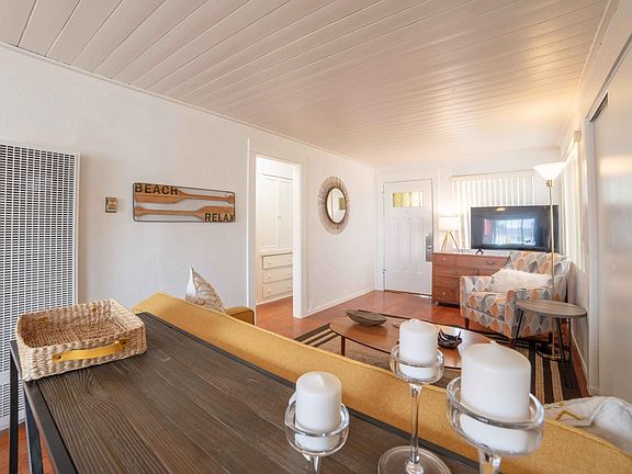 Furnished Rentals (1-11+ Month Terms) At approximately 650 Sq Ft this front house (1 of 2 Duplex) comes with a shared patio with a table for outdoor dining and 1-car off street parking. The 1-bed (1-Queen) 1-bath classic beach cottage has fresh paint, new furnishings, and also has its own washer and dryer along with air conditioning too! Come relax and kick your feet up after a morning surf or host your friends to a bbq out on the patio during sunset. Prices go up during the Summer months. Small pets considered!