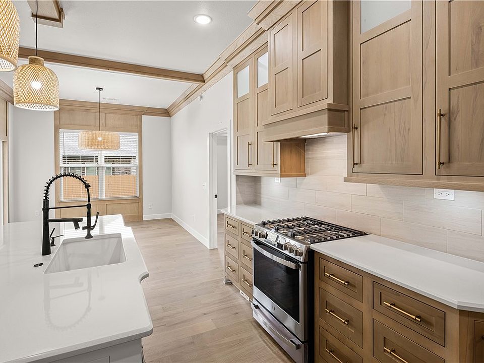 **OPEN HOUSE M - F 9 AM - 4 PM, SAT & SUN 2 -4 PM.** Just finished and move-in ready - walking distance to Bentonville High School West! One story open floorplan with high end upgrades and beautiful woodwork throughout along with moodlighting! Custom cabinetry with soft close hinges and drawers, large walk-in hidden pantry, energy star stainless steel appliances including refrigerator, retractable central vac with toe kick under kitchen cabinetry, wired for surround sound, tankless hot water heater, wireless security system, sprinkler system out front, 3-car garage is 100% insulated, outlets in soffit for Christmas lights. Gas hookup out back, white quartz counters and more!!