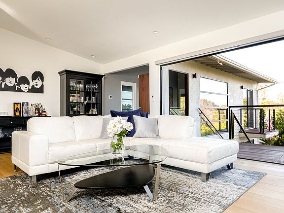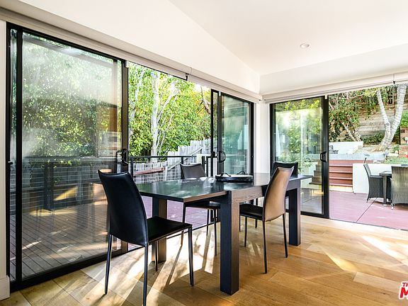 Get into the Las Casas Loop - 5 houses selling for North of $5M within 500 yards of this property! The perfect home to take in the sunrise or sunset, this contemporary home features an open floor plan, with California indoor-outdoor living being the highlight. The Ipe wood deck begins at the front of the house and wraps around to the exceptional backyard where you are in your own private oasis outfitted with a wall-mounted TV, 7-person 65-jet spa, built-in BBQ, outdoor fireplace, terraced entertaining levels, and beautiful mature trees, all of which flow right back into the kitchen, dining and living room. Off the main living area, you have two bedrooms, a bathroom, and a laundry room with the master suite just down the hall. The master suite features a large bathroom, walk-in closet, and two additional Ipe wood balconies that offer unobstructed sky and canyon views (since you have no neighbors across from your property - a rare find!). Downstairs you have a fourth bedroom which is currently being used as a movie screening room, complete with an en-suite bathroom, its own private entrance, and a temperature-controlled wine cellar. Perfect for entertaining and located on one of the most private and quiet streets in the Palisades, yet a short walk to the village and the beach, this one is not to be missed!