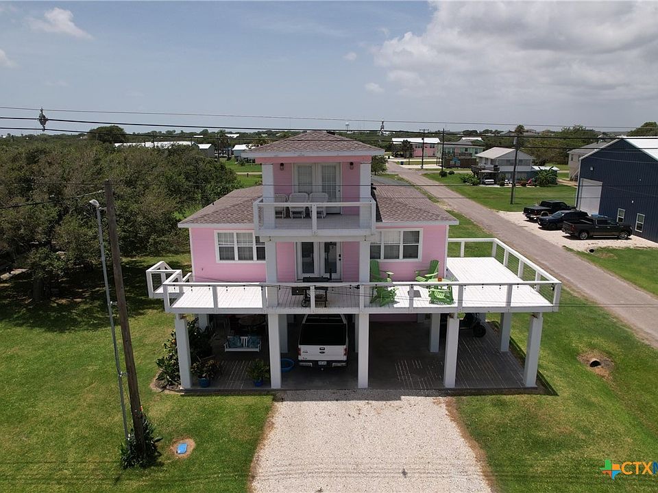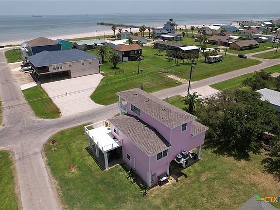 AWESOME VIEWS OF MATAGORDA BAY AND AWESOME LOCATION, 1 BLOCK TO KINGFISHER BEACH OR WADE FISHING IN MATAGORDA BAY! 3 Story home built on CONCRETE PILINGS! SPACIOUS DECK on 2nd floor and PRIVATE DECK on 3rd floor, plus expansive PATIO AREAS under house, all perfect for entertaining. OPEN CONCEPT living, kitchen, dining areas with windows on 3 sides of house, which bring light in and accentuate the open, light and airy feel of this comfortable 4 bed, 3.5 bath home. Huge kitchen bar separates kitchen from dining and living areas. Pantry and updated, built-in SS stove/oven. 1/2 Guest Bath, off living room, convenient, for guests. Master on main floor, PLUS a guest room! 3rd floor has 3rd guest room and private bath w/covered, private deck! What a view! Full time? Retired? Work from home? 3rd story room is also perfect for private office area! Additional guest quarters downstairs include 1 bed/bath combo and separate laundry room. Double garage in back yard and plenty room for extra parking or playing on this 2nd lot! Double garage has roll up doors on north and south sides; great for maximizing the southern breezes! Extra storage/closet area, in garage. 2 Central A/C units for 2nd and 3rd floors and 2 window units down, provide a/c for down bedroom/bath and laundry room. 2 Lots mean room to spread out, park boat, after a day of fishing, or park golf carts and guest's vehicles via 1 of 3 parking culverts on north & east sides and also, in front of garage. All you need, in POC, for awesome summer weekends, or a lifetime!