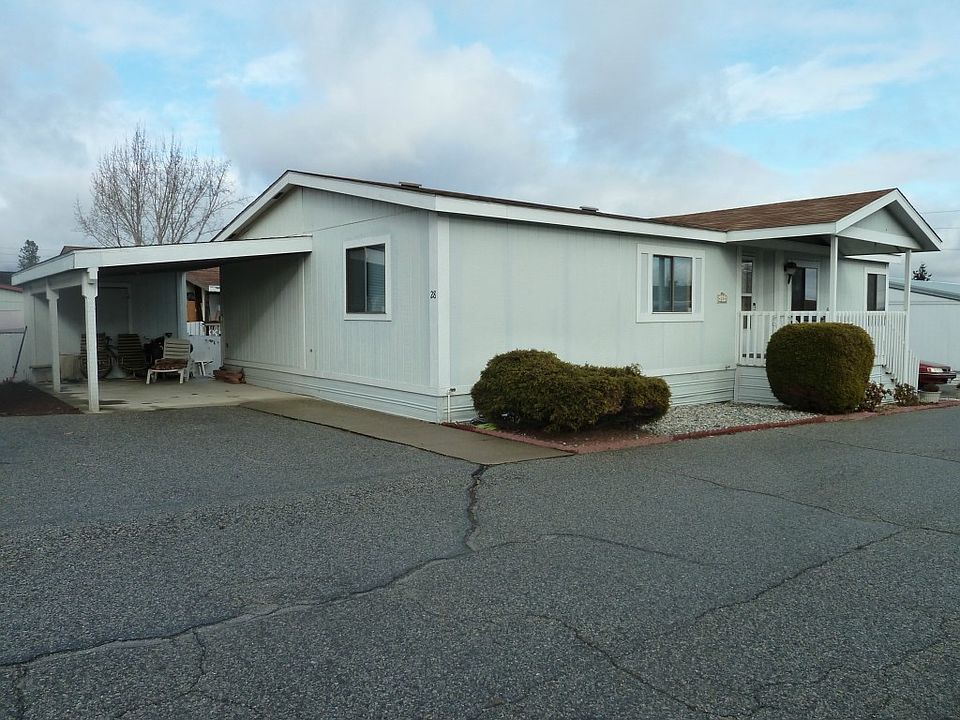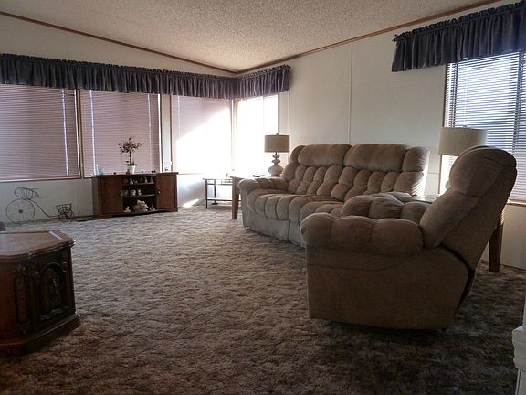 Well maintained and move-in ready Marlette double wide home. Open layout with vaulted ceilings and skylight in kitchen. Master bath has a separate tub and shower. Covered back deck and extra storage in carport. New roof in 2010. All appliances stay. $355 lot rent covers water, sewer, irrigation, and garbage collection. Not a 55 and older park. Show anytime.