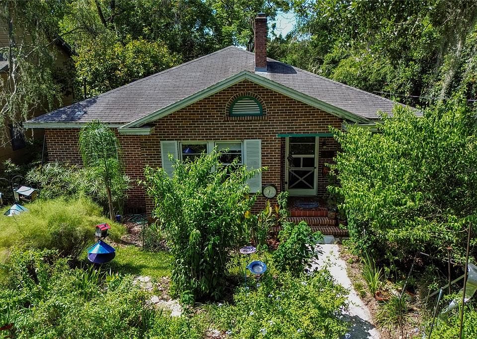 Priced for a quick sale. Home to include a new roof with an acceptable offer. Cute and charming 3 bedroom, 2 bathroom brick home in NE Gainesville's Duck Pond neighborhood. Great location walking distance to downtown Gainesville's shops and restaurants, Tom Petty Park and the Thomas Center. Just 3 miles to the University of Florida, Shands/UF Health and Gainesville VA. Built in 1939, this home offers loads of vintage charm including solid wood floors, wood burning fireplace and wood kitchen cabinets. The home has 1,299 heated and cooled square feet with a detached guest house. Currently housing the washer and dryer, a kitchenette and living space. It is perfect for a studio or an in-law suite. The main house has a covered front entry that opens to a Great Room with fireplace, wood floors and lots of natural light. Through the archway on the left is the dining room with large picture window overlooking the natural garden. Next to the dining room is the kitchen with wood cabinets, tile counter-tops, gas range top and separate entrance to the side yard. Off the Great Room is the enclosed Florida Room with wood ceiling, walls of windows and access to the rear yard, patio and guest house. To the left of the Great Room are two guest bedrooms that share a guest bathroom. The guest bathroom has vintage tile and a tub/shower. The third bedroom is the primary suite with separate ensuite bathroom. The primary bathroom has tile and a stand alone shower. All the rooms are generously sized with wood floors and lots of light. The home sits on .12 of an acre and is part of the Duck Pond Historic District. Located on a quiet street, you will love the great location, friendly community and peacefulness of this home.