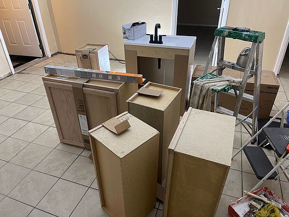 Large new ac unitNew kitchen cabinetsBig closet