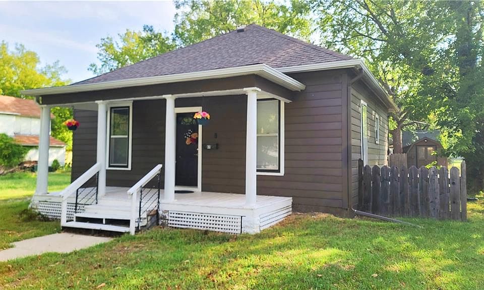 This cute bungalow has been nicely updated and is ready for immediate occupancy without a project list! The recently renovated interior features newer flooring, paint, and fixtures. It boasts a large living room and eat-in kitchen, with a single bedroom and one-and-a-half baths - perfect for someone looking for easy care and low-maintenance. The exterior has great curb appeal thanks to the striking dark paint tones and crisp white trim, with front and rear covered porches. Additionally, the property includes a carport, a garage, and a shed to provide ample storage solutions and room for your hobbies. Whether you need a starter home, or you’re looking to downsize, this mortgage payment could be cheeper than rent!