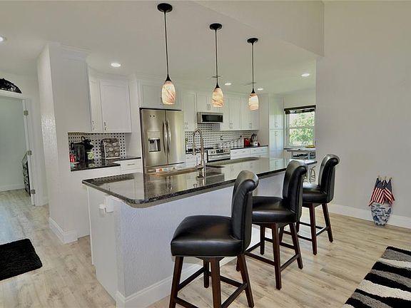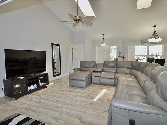 LAKE VIEWS IN PLANTATION GOLF & COUNTRY CLUB! Welcome to this beautifully maintained 3-bed, 2-bath, 2-car garage home, perfectly tucked away on a large 11,465 square foot lot (plenty of room for a pool), located on a quiet cul-de-sac in the highly sought-after Plantation Golf & Country Club community. With its balanced mix of lush grass and decorative rock landscaping, light blue quoin accents, louvered shutters, and modern finishes, this home exudes timeless Florida charm. Step inside and discover an inviting open floor plan where the living and dining spaces seamlessly connect to the kitchen. High ceilings and thoughtfully placed skylights fill the home with natural light, creating a warm and airy atmosphere. The chef’s kitchen is a true showstopper, featuring a spacious island with breakfast bar seating, a stainless steel farmhouse sink, stylish pendant lighting, and plenty of counter space for both cooking and entertaining. White shaker soft-close cabinets, sleek granite countertops, a pantry with pull-out drawers, stainless steel appliances, and recessed lighting complete this modern and functional space. The home’s split bedroom layout ensures privacy and comfort for all. The primary suite offers serene lake views, sliding glass doors leading to the lanai, a walk-in closet plus a built-in closet, and a spa-like en suite bath. Here you’ll find a dual sink vanity with generous storage, a private water closet, a walk-in shower, recessed lighting, and a skylight for added natural light. Across the home, two additional bedrooms with built-in closets share a sizable bathroom with a shower/tub combo. Finally, step into the expansive lanai with panoramic windows, where you can relax and soak in the tranquil water views. French doors lead out to the patio and backyard, perfect for grilling, entertaining, or simply enjoying Florida’s year-round sunshine. Additional home highlights include: luxury vinyl plank (LVP) flooring throughout, laundry room with storage shelving, multiple linen closets for extra storage, utility sink in garage, hurricane windows and shutters, interior plantation shutters. Membership to Plantation Golf & Country Club is optional, but available for those who want to enjoy golf on two championship courses, tennis, a fitness center, pool, and vibrant social events. This prime location puts you just minutes from shopping centers, restaurants, grocery stores, golf courses, I-75, CoolToday Park, award-winning beaches, historic Downtown Venice, and the new Wellen Park district. This remarkable home blends style, value, and location in one of Venice’s most desirable communities. Don’t miss your chance to experience the ultimate Florida lifestyle at Plantation Golf & Country Club!