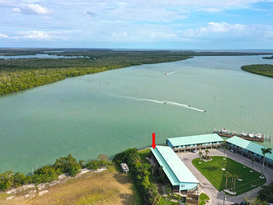 Beautiful & tranquil, wide water views of Goodland Bay. 1 bedroom, 1 bath condo with stainless steel appliances, Bamboo wood flooring & charming coastal furnishings. Extra storage, parking for your car and boat trailer under the condo. Dock with 10,000 lb. lift for up to a 24 ft. boat. Just minutes to world class fishing, shelling and pristine beaches. Goodland offers 2 county parks, 2 marinas, several restaurants & a post office. Street legal golf carts are permitted.