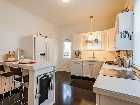 Darling 2 bedroom Bungalow with lots of updates. This unique home has a very large living room and dining room. The spacious well lit kitchen will make cooking a breeze! There is hardwood floors throughout the house although the kitchen has engineered hardwood that is very complementary. The roomy house has many updates and amenities: high efficiency furnace; tank-less hot water heater with hot water on demand, 20 x 20 garage/man cave; quaint screened in front porch for relaxing; huge fenced backyard for the kids and dogs; newer appliances; plus more hidden square footage upstairs!