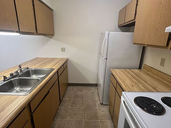 Functional Kitchen Equipped with a full-size refrigerator, electric stove, ample cabinet storage, and durable countertops.