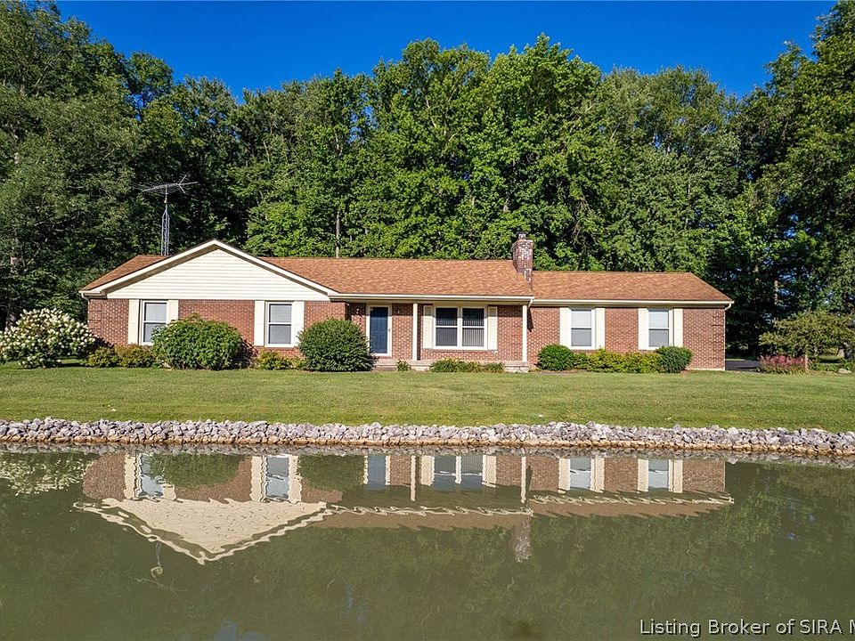 One of the best properties in Hanover! This extremely well maintained property of over 8 acres has so much to love. Enjoy the view from your front porch of the stocked pond with a beautiful fountain! This brick home has hardwood throughout the open concept with 3 bedrooms and 2 baths. Easy access large garage with wheelchair ramp if needed. A bonus is the steel frame barn/garage that is insulated with heat and electric! The property includes a peaceful sanctuary of woods along with a large cleared area for a garden or pasture. Schedule your showing today!