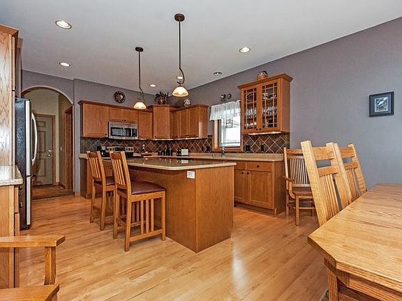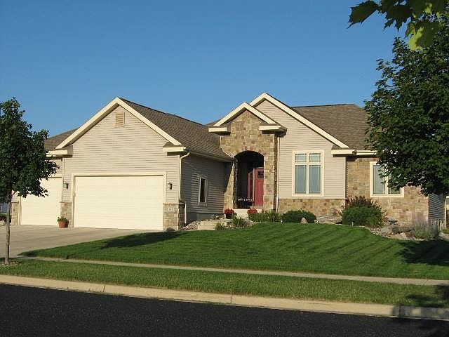 Impressive ranch home w/3-4 bedrms, office, 3 baths + private 1st floor laundry! Large gourmet kitchen w/Quartz countertops, maple floors, work island, stainless steel appliances + dinette area! Great rm w/gas fireplace & cathedral ceilings! Humongous family rm in lower level finished in 2009! Master suite w/double walk-in closets, double vanity, private bath w/walk-in tile shower w/dual sprays! 3 panel mission oak doors, 3 car garage w/steps to basement + dual zone heat! Near Park & Pool!