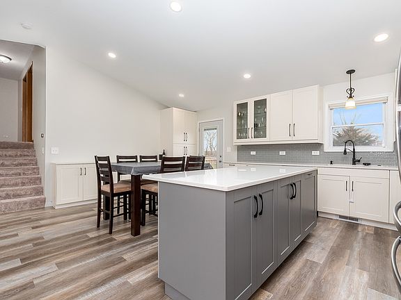 Get ready to be wowed by the newly completed main floor updates including stylish wood flooring throughout the open plan with vaulted ceilings, quartz counters, soft-close drawers, and a large functional island with bar seating. Enjoy the smartly placed additional cabinetry along the eating area wall with built-in wine fridge, pantry closet, and new french door leading to the back deck. LED lighting, a timeless backsplash, and a classy range hood with a pot filler over the gas range rounds out the kitchen updates. Enjoy the wood pergola shading the stamped patio for warm-day gatherings and grilling. A spacious lower family room with access to the large garage makes the daily flow of life easy. The concrete crawl space adds even more storage, too. This functional and spacious home also features new carpet upstairs in 2022 a den in the lower level that could also be made into a 4th bedroom. With inventory so low and updates like this, this home won't last!