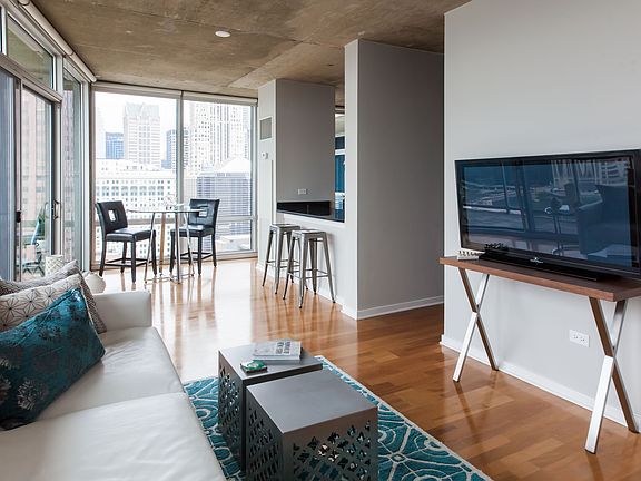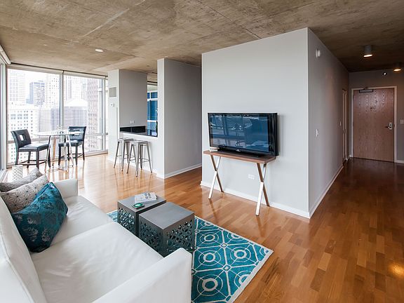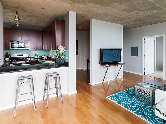 Highly sought after high floor corner concrete loft with breathtaking Sear's Tower, Financial District & Chicago River views at The Vetro in Printer's Row! High floor w/ 1,000+ sq ft of unique living space flooded w/ light from floor to ceiling windows equipped with custom roller shades. This impressive home features private glass enclosed balcony perfect for urban gardening, dining al fresco and enjoying sunset views. Sleek and modern design includes open kitchen w/ SS apps inc'd gas range, 42 inch cabs, granite & glass tile backsplash. Spacious en suite master with dual closets and marble / stone bath. Den makes great bed, office, or nursery. Freshly painted, hardwood floors, In-unit W/D + on-site storage. Brand new Wells Pantry neighborhood market next door. Short walk to ALL 'El' lines, brand new Riverwalk park, Metra, Printers Row, Loop, South Loop, Grant Park, Lake, shopping & entertainment. Centrally located w/ access to major highways. Full amenity bldg w/ 24-hr door staff, on-site mgmt, fitness, social room, sundeck, saunas, hot tub. Assess. incd: Cooking Gas,Central A/C,storage, trash,water,doorman. Rentals ok but at cap. Pet friendly. FHA approved! Prime gar. parking $30k