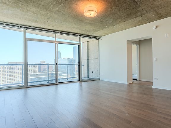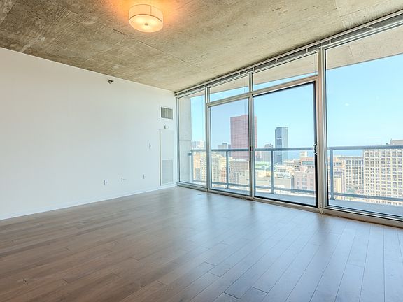 Available now. High floor 1 bedroom/1 bath in sought after Vetro building. Beautiful new flooring, city and lake views, high ceilings, floor to ceiling windows, and large private balcony. Kitchen features stainless steel appliances, cherry cabinetry, and granite countertops. In-unit washer/dryer. Full amenity building with 24 hr doorstaff, fitness center, sundeck, party room and spa. Garage Parking an additional $250 per month. Storage locker included.