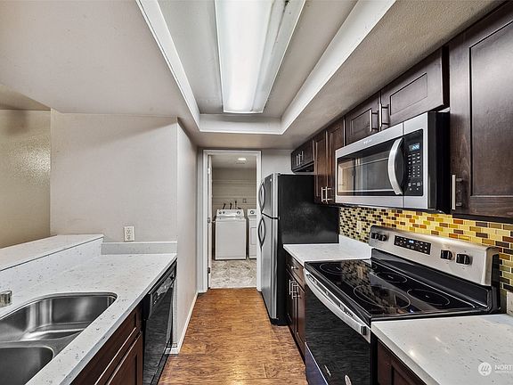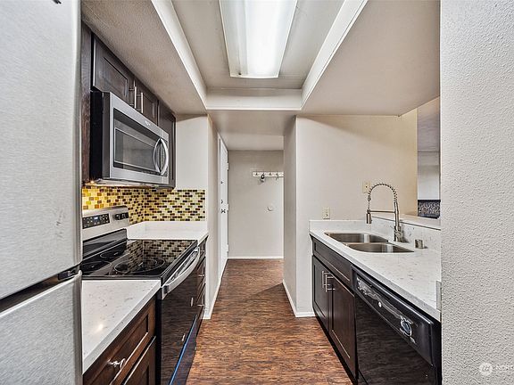 Great location! and Seller will contribute to Buyer closing costs, only Minutes to downtown Renton and close to freeway access nice property is convenient to everything. Stainless Steel appliances, living room with corner fireplace and there are great storage options. The 2 Balconies overlook a park-like setting for relaxation. The laundry room is so large you could possibly add a desk to work from home. The building has secured access and elevators. Potential Rental, Downsize or Great first time home.