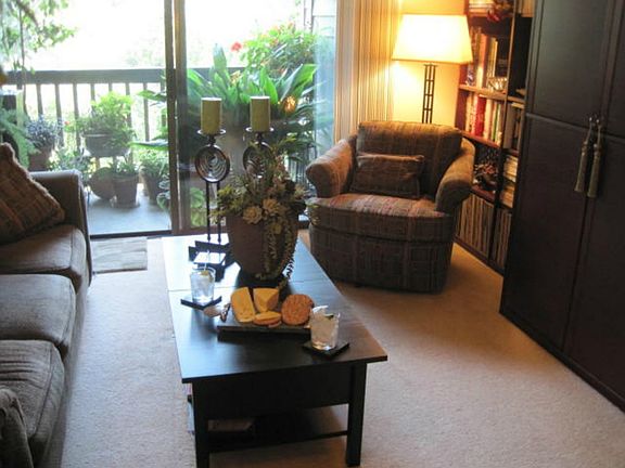 Spacious, Sunny,& Great Value. Relax in the warmth of this lovely 2 bed, 2 bath condo with two decks facing a greenbelt. Enjoy the recently updated, chef's kitchen with granite countertops & natural wood flooring & cabinets. Entertain in the open dining/living area with unique, corner fireplace. Newer, high end washer/dryer in lg pantry. Assigned, covered parking space (41)close to secure building. Ample closet space in master & storage off main deck too. A private, sunny place to call home.
