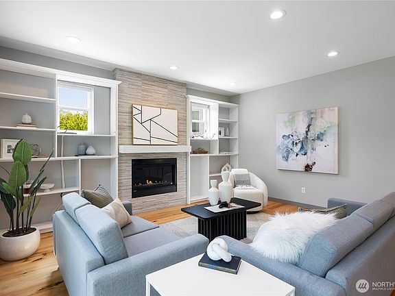 A HIDDEN GEM! Located in a very quiet and private pocket of Highland Park this 2017 contemporary home offers so much. 2 stories with high ceilings, an open concept with the kitchen/dining area/living room all flowing to a large deck overlooking a lush greenbelt. High quality appliances and dark cabinets contrast against light wood floors. An additional bedroom (or office), a half-bath and 2-car garage complete the main floor. Upstairs find a large primary suite with a private view deck, large walk-in closet and spa-like bath. Plus 2 additional large bedrooms, a full bath and laundry room. 20 mins to downtown and 12 mins to the Alaska or Admiral Junction. Welcome home!