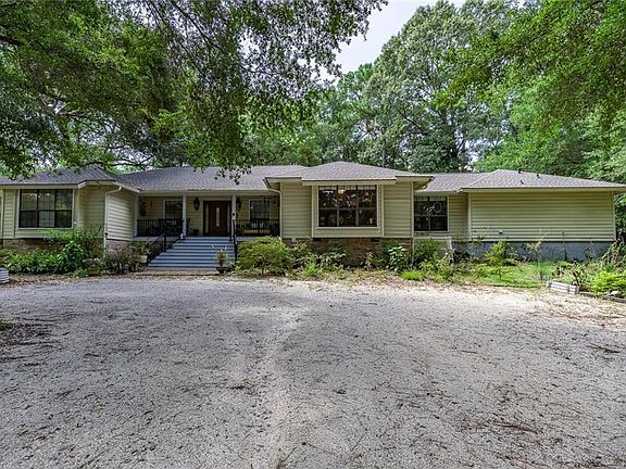 Welcome to this beautifully updated Southern-style home, perfectly tucked beneath a canopy of mature oak trees. With its inviting curb appeal, circular gravel driveway, and lush landscaping, this serene property offers privacy and charm in equal measure. Step inside to discover a spacious living area with soaring vaulted ceilings, exposed wood beams, and a stunning floor-to-ceiling brick fireplace that anchors the room. The warm wood tones and natural light streaming through large windows create a cozy yet elegant ambiance. The heart of the home—its chef-inspired kitchen—features sleek quartz countertops, custom cabinetry, stainless steel appliances, and a large center island for entertaining. Adjacent dining and living spaces flow seamlessly, making gatherings effortless and enjoyable. Retreat to the luxurious primary suite, where a spa-like bathroom awaits. It boasts a freestanding soaking tub, expansive walk-in shower with designer tilework, and dual vanities—all designed with comfort and sophistication in mind. Outside, the peaceful backyard oasis is made for relaxation and entertaining. A large stone patio for outdoor dining, while the separate firepit seating area invites quiet evenings under the stars. With mature landscaping and a fully fenced yard, this backyard offers privacy and serenity year-round. Buyer to verify all information during due diligence.