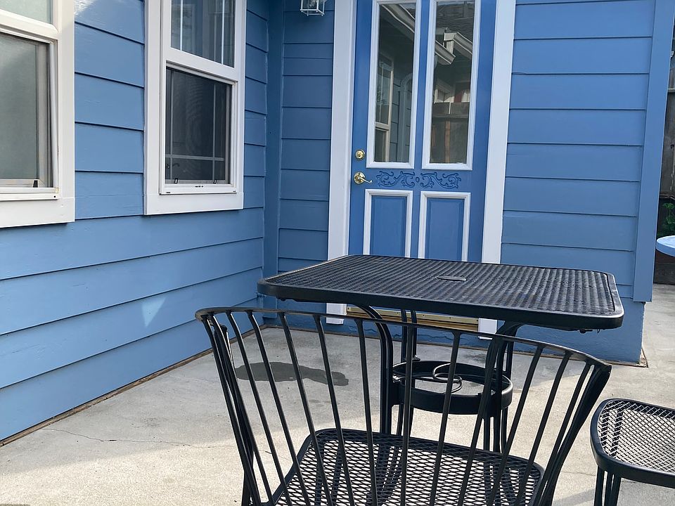 Gas apartment sized stoveNew blindsNew microwaveArea for gardeningGreat private small patio