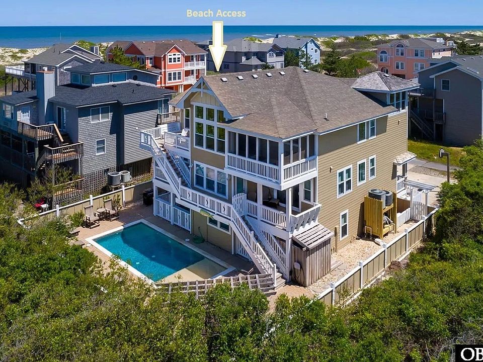Back on the market with a huge price drop! So close to the beach and feels like a semi-oceanfront with only one house directly in front of it. Welcome to "Beach Happy," an 8-bedroom, updated, amenity-filled home with amazing ocean views. This home has been meticulously maintained over the years and has been a great rental income producer, with over $165,000 on the books for 2025. Custom built by Olin Finch and just steps from the beach. The layout of this home is conducive to large groups and has multiple gathering areas for everyone to enjoy. Set up as a reverse floor plan, the top level has an open feel with a ton of natural light. With bamboo flooring throughout the top floor, you will find the great room, two ensuite bedrooms, a kitchen, a dining area, and a loft with a game table. The kitchen comes equipped with stainless steel appliances and boasts two extra full-size refrigerators and two dishwashers along with granite countertops. Off of the dining area, there is a screened-in porch updated in 2024 with Screeneze technology. The middle floor has four bedrooms, all of which are ensuite, along with a den and laundry area. The ground level features the two remaining bedrooms, along with a theater room and a rec room that includes a wet bar and a full-size refrigerator. The rec room flows seamlessly into the pool area, which has a private feel with it backing up to the wooded open space. All the decks, railings and stairs have recently been replaced in 2024. While this house is listed as “third row,” it is closer to the beach than a lot of semi-oceanfronts, and you don’t have to cross over a busy road to get to the beach access, just cross the couldesac to the beach entry! Act quick, and you can walk into a season of full rental income. Schedule your showing today!
