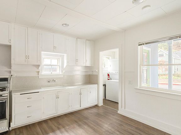 Ultra low maintenance little miner's shack in Old Bisbee. Covered porch with front row seats to the coaster races and Bisbee 1000 stair climb. Public parking spot right out front. Cool breezes in summer come from the canal right behind the house. Great location within easy walking distance to downtown, but with neighborhood vibes. Very cute features include original windows, kitchen cabinets, loft, and TWO closets in the bedroom. This house has been a rental for the last couple years, so all systems are functional. Easy access right from Tombstone Canyon.