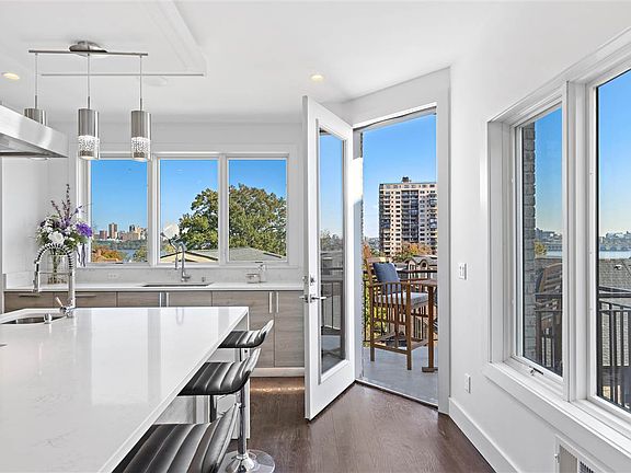 FULLY FURNISHED RENTAL! This gorgeous 3-year young all-brick construction townhome sitting cliffside in Edgewater is the home you've been waiting for. As you enter, take note of the luxurious finishes throughout. The living room includes a beautiful stone wall with a modern gas fireplace. The room opens up to the expansive dining area and modern gourmet kitchen. The kitchen is complete with quartz countertops, two-tone cabinetry, large custom island and features luxurious Jenn-Air appliances & wine cooler. Through the kitchen you will notice Hudson River views from midtown up to the George Washington Bridge, which can be enjoyed from indoors or from your step-out patio. As you head upstairs to the main bedroom level, you will be greeted with three large bedrooms including a luxurious master en suite. Up another set up stairs you can find your gorgeous private roofdeck w/ panoramic NYC views, large sitting area and custom glass banister. Below the main living level is where you can enjoy your formal family room (easily converted to a bedroom w/ private entrance), full bathroom, laundry room and garage. Finally, on the lower level you can enjoy your finished basement w/ access to your own outdoor grotto w/ gas fireplace for year-round enjoyment. This is a fully integrated smart home with Sonos-compatible speakers throughout, security cameras, Ring doorbell, LED lighting, solid core doors, Pella Windows, 4" red oak HW floors, 2 zone heat & air, central vac and full custom closet build-outs. Ideally located on a highly coveted street w/ easy access to nearby parks, shopping, schools, and NYC commute options.
