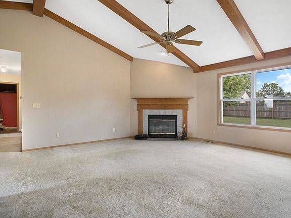 How soon can you move? Open concept mostly brick front with 3 bedrooms, 2 baths, 3 car garage. On quiet street. Impressive great room with 12' beamed ceilings, wood burning fireplace open to great kitchen and dining area with sliders to deck and nice yard. Privacy fenced back yard. Primary suite with bath and walk-in closet. 2 additional bedrooms and full bath. Main floor laundry. Mostly finished, drywalled rec room with recessed lighting, office waiting for your finishing touches. All appliances stay. Supply of wood as well for fireplace. Roof shingles 2020. Super location close to parks, award winning Pecatonica schools and US 20. Seeing is Believing!