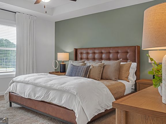 Auburn E25 plan - Lot 41. New construction in a prime location within walking distance to dining and shopping. This 5-bedroom, 4-bathroom floor plan includes a main-level secondary bedroom and a total of three full bathrooms. The home features a 2-car garage plus a separate golf cart garage. The kitchen is designed for functionality and style, offering 42" upper cabinets, stainless steel appliances, granite countertops, and a large island with additional workspace. The open-concept layout connects the kitchen to the family room, which includes a linear fireplace. The primary suite includes a granite-topped double vanity, soaking tub, tiled shower, and a large walk-in closet. Additional features include a second-level laundry room and spacious secondary bedrooms. Community amenities include two 18-hole golf courses, tennis courts, swimming pool, clubhouse with on-site restaurant, and more. A 1-year golf membership is included with the purchase. Estimated completion date: September 2025. $30K buyers incentives.