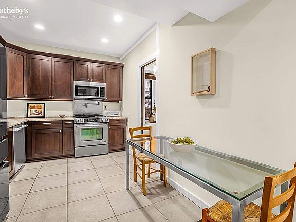 Tucked away at the rear of a picturesque prewar elevator coop, this unique and inviting 700+/- sq ft home offers a rare blend of character, space, and functionality. With high ceilings, hardwood floors, and recessed lighting throughout, the apartment is full of warmth and charm. Exposed brick window niches in the living room and bedroom add a cozy, timeless touch.