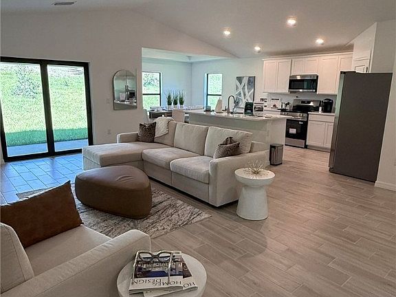 Welcome to this beautifully designed 3-bedroom, 2-bath home by Christopher Alan Homes, where quality construction meets stylish, modern living. From the moment you walk in, you’ll be greeted by soaring cathedral ceilings that enhance the spacious feel of the open-concept great room and main living areas with stylish wood plank tiles throughout and soft carpet in bedrooms.