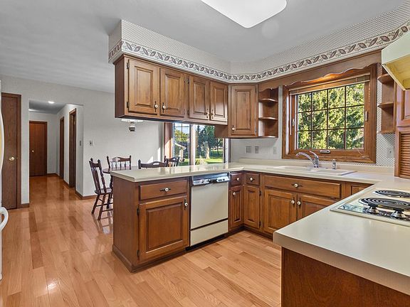 Location, location, location on the north side of city in Elkhorn WI is this beautifully built brick home with 3 bedrooms, 2 full baths & 26'8x22'11 garage with work/craft room. Thelen Built, ranch style living to fit everyone's needs. Easy flow layout, beautiful cherry wood cabintry and some wood floors. Garage offers a separate space for a work shop or craft room. All walls are insulated and plastered ... top quality living.