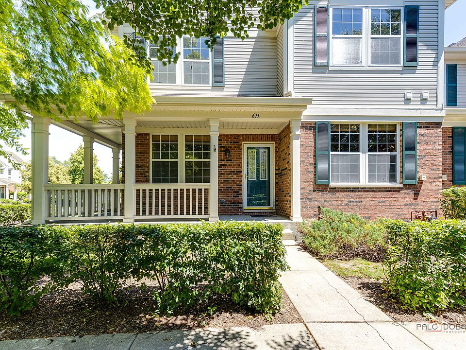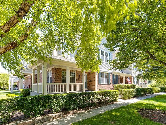 2 story end unit with finished basement. Inviting entry with wrap around covered porch. Hardwood floors & 6 panel white doors & trim. Bright living room featuring a gas log fireplace & entertainment niche. Kitchen overlooks the living room & large dining room offering a breakfast bar, pantry, lots of cabinet & countertop space. Upstairs has two spacious bedrooms. Primary suite with vaulted ceilings, two closets including a walk-in, & private full bathroom. Another full bathroom & laundry room complete the second level. The finished basement offers a rec room great for entertaining & storage space. 2 car garage. Close to shopping & restaurants galore!