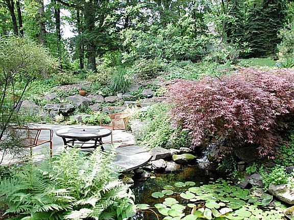 Charming cottage on desirable close in street features a breezy front porch, serene backyard with blue stone infinity edge patio into self maintained pond with waterfall, and beautiful landscaping, inside there is an updated kitchen w/ stainless steel appliances, first floor family room that could also be a dining room, and large combination living room/dining room with fireplace. Spacious master bedroom, adorable updated main bath, hw floors throughout, lots of light with all new windows. Lovely!