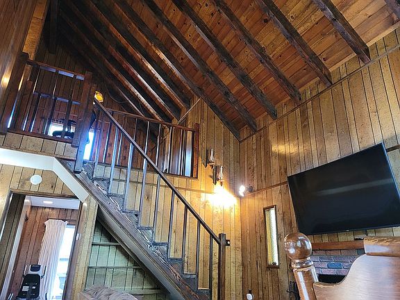Mountain Chalet living in picturesque Wrightwood! This charmer features 2 bedrooms, 2 bathrooms, a bonus loft, a huge lot, and an oversized detached 2 car garage. Built in 1978 and well-loved. Open beam cathedral ceilings span 30 feet high. Upstairs to the 2nd bedroom and loft area, with peek-a-boo views down below. Lots of open beams and sturdy construction. Outside, relax on your ski lift swing on your quarter acre lot, or head to the 600 square foot garage with work area and office space. The upstairs garage area has the potential for developing into more space. Great storage options in the garage or under the house. Carport option. Lots of parking, bring the RV...Located just inside San Bernardino County. Start making memories that will last a lifetime!!
