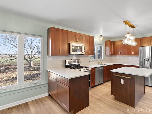 Sprawling full limestone ranch on nearly 2 acres! This home has 3 bed (possible 4th) with 2 full baths. Mid-century modern ranch features remodeled kitchen complete with stainless appliances and quartz counters, refinished hardwood floors, limestone fireplace, arched doorways, refreshed baths, new light fixtures, and new paint throughout. New roof in 2022! Full basement with partially finished area awaits your final touches to easily add additional beds/rec room/etc. The 2 acre corner lot has large detached 2.5 car garage with new siding and roof, chicken coop, and shed. Wooded along with creek / stream in back of property. We've been told city water/sewer is available at street if desired. Just 1 mile east of I-65, it's commuter friendly and close to shopping while being tucked away on your own private retreat. Taxes will be much lower once exemptions are filed too! Make your appointment today!